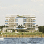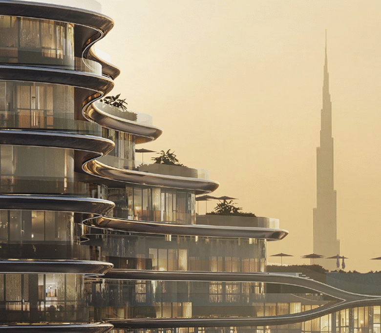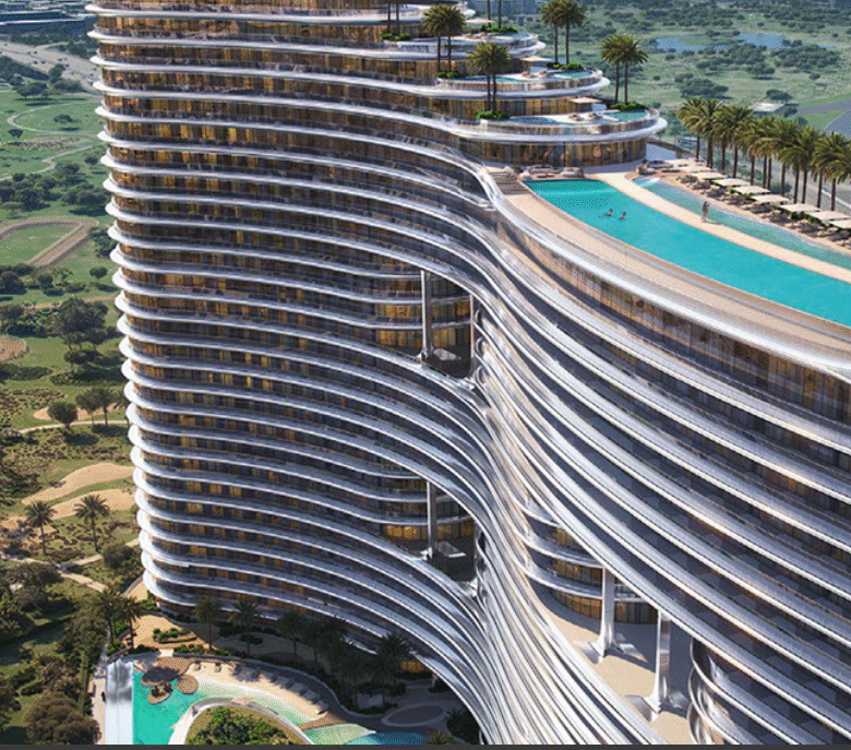 The architectural design is a graceful homage to the fluidity of water — a façade that dances with light, blending sinuous curves and modern aesthetics.